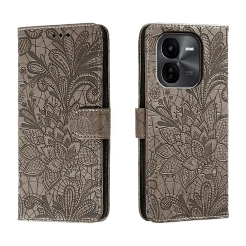 Para Vivo Iqoo Z9X Funda para Teléfono de Cuero con Tapa y Estampado de Flores de Encaje (Gris)