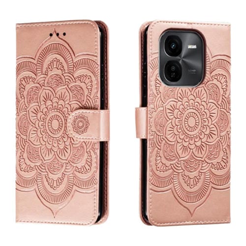 Para Vivo Iqoo Z9X Sun Mandala Funda de Cuero para Teléfono con Patrón En Relieve (Oro Rosa)