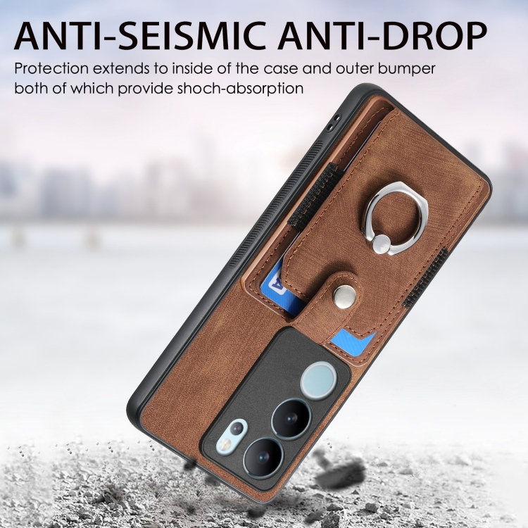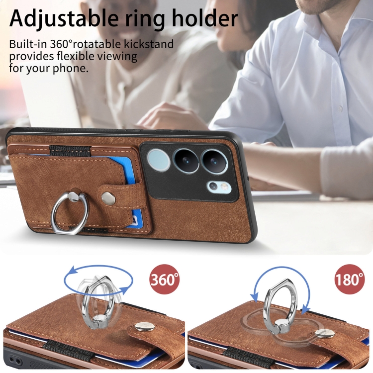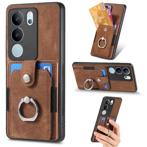Para Vivo S17 Pro Funda para Teléfono con Billetera y Tarjeta con Anillo con Sensación de Piel Retro (Marrón)