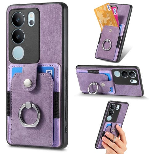 Para Vivo S17 Pro Funda para Teléfono con Billetera y Tarjeta con Anillo con Sensación de Piel Retro (Púrpura)