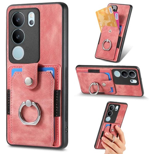 Para Vivo S17 Pro Funda para Teléfono con Billetera y Tarjeta con Anillo con Sensación de Piel Retro (Rosa)