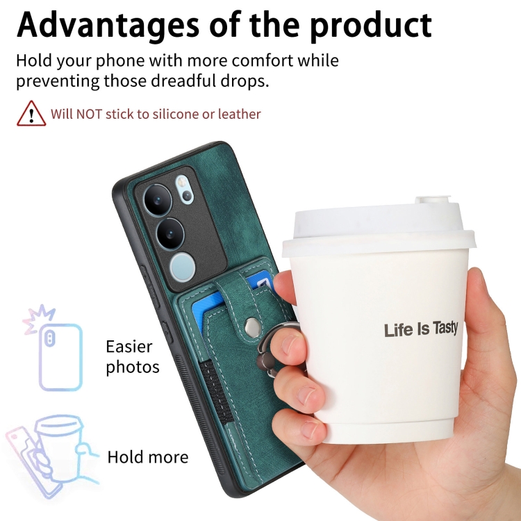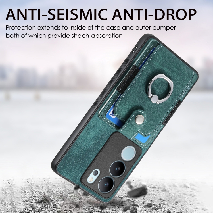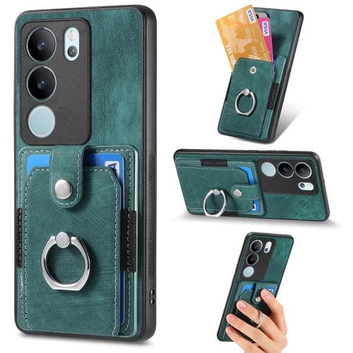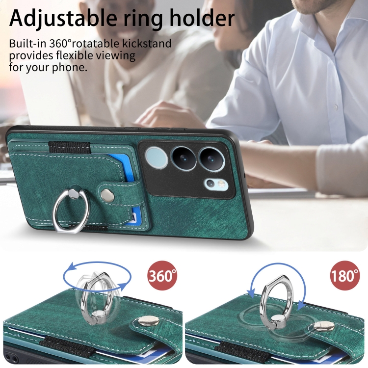 Para Vivo S17 Pro Funda para Teléfono con Billetera y Tarjeta con Anillo con Sensación de Piel Retro (Verde)