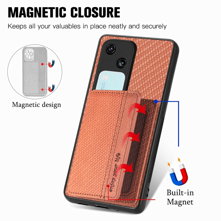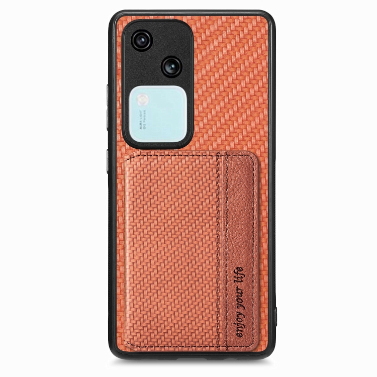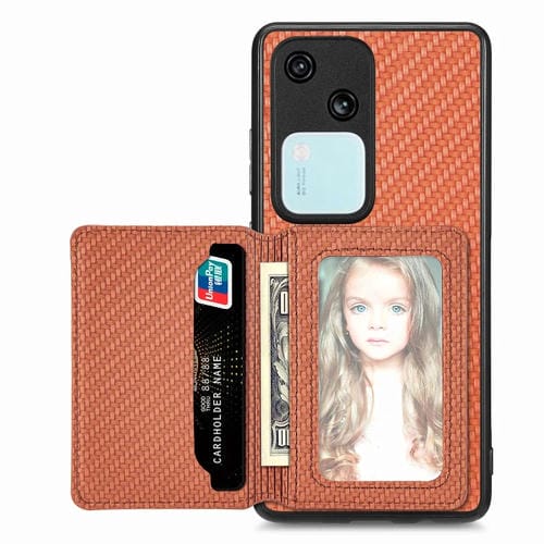 Para Vivo S18 Funda para Teléfono con Bolsa para Tarjeta Magnética de Fibra de Carbono (Marrón)