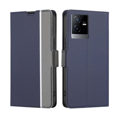 Para Vivo T2X 5G/Y73T/Iqoo Z6X Textura de Sarga Caja de Teléfono de Cuero con Hebilla Lateral (Azul)