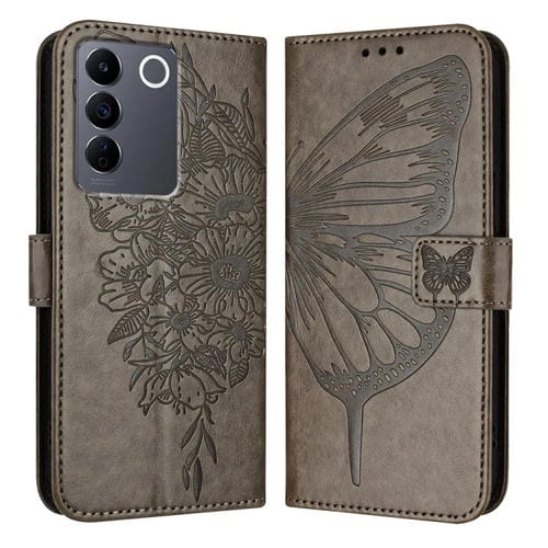 Para Vivo V27 5G / V27 Pro 5G Funda para Teléfono de Cuero con Mariposa En Relieve Global (Gris)