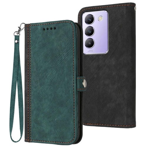 Para Vivo V30 Lite 5G India / T3 5G Idn Hebilla Lateral Correa de Mano Doble Funda de Cuero para Teléfono (Verde Oscuro)