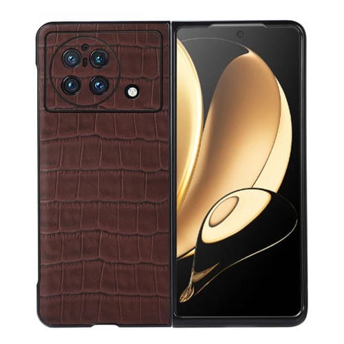 Para Vivo X Doble Accione Agujero Textura de Cocodrilo Caja de Cuero Genuino (Marrón)