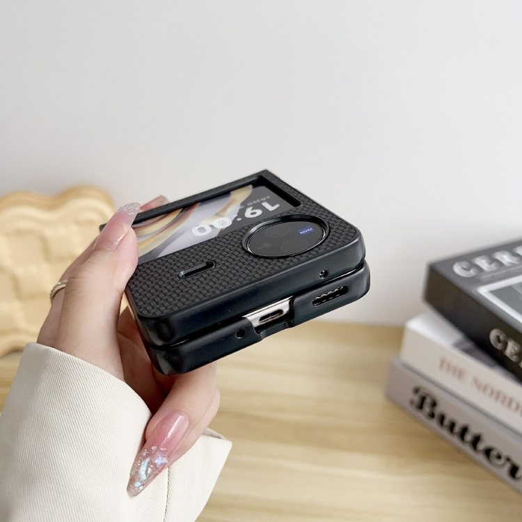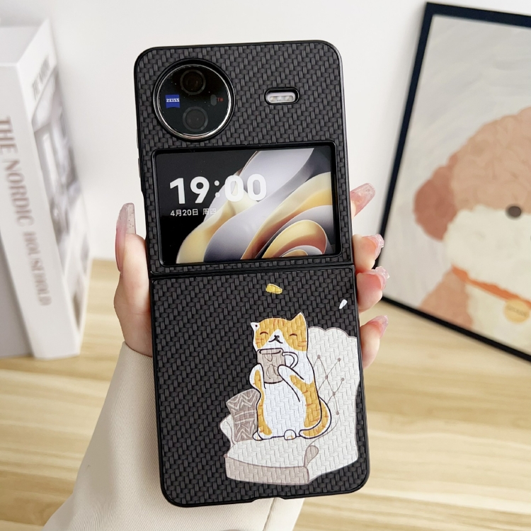 Para Vivo X Flip Funda para Teléfono con Patrón de Dibujo Coloreado con Textura Trenzada (Gato de Café Negro)