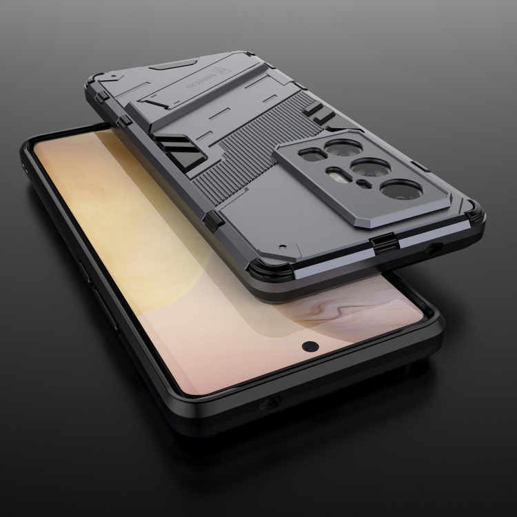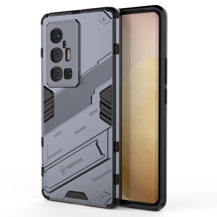Para Vivo X70 Pro + Punk Armor 2 En 1 PC + TPU Funda a Prueba de Golpes con Titular Invisible (Gris)