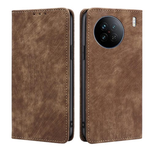 Para Vivo X90 Rfid Funda de Teléfono de Cuero Magnético con Cepillo Antirrobo (Marrón)