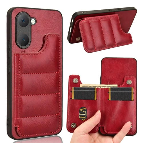Para Vivo Y03 4G Funda para Teléfono con Bolsa para Tarjetas de Costura con Patrón de Vaca (Rojo)