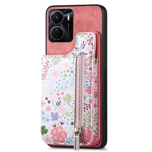 Para Vivo Y16 Estuche para Teléfono con Billetera con Cremallera Pintada Retro (Rosa)