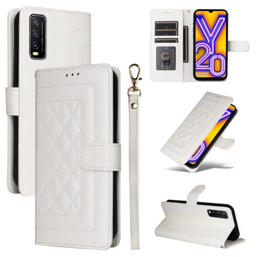 Para Vivo Y20 / Y20I Funda para Teléfono con Tapa de Cuero Diamond Lattice (Blanco)