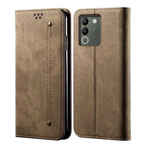 Para Vivo Y200 Funda de Cuero con Tapa con Textura Vaquera (Caqui)