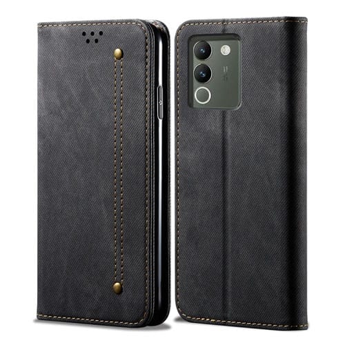 Para Vivo Y200 Funda de Cuero con Tapa con Textura Vaquera (Negro)