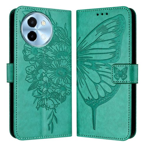 Para Vivo Y38 5G Funda para Teléfono de Cuero con Mariposa En Relieve (Verde)