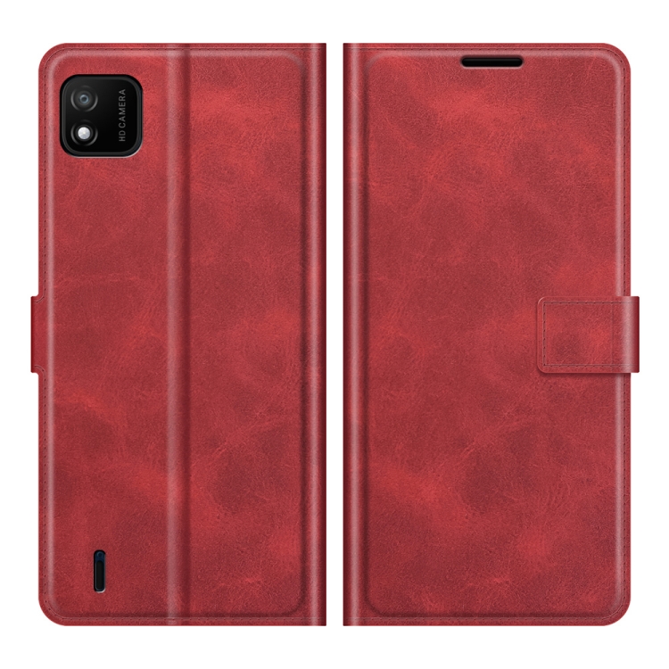 Funda de Cuero para Wiko Y62 Retro con Hebilla, Soporte, Tragamonedas y Billetera (Rojo)