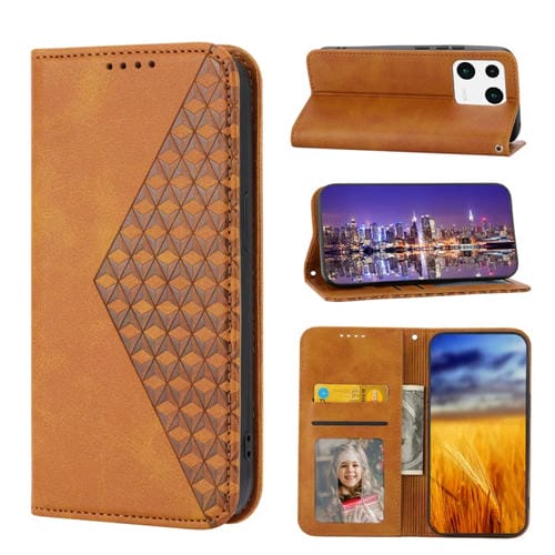 Para Xiaomi 13 Cubic Grid Becerro Textura Magnética Funda de Cuero para Teléfono (Amarillo)