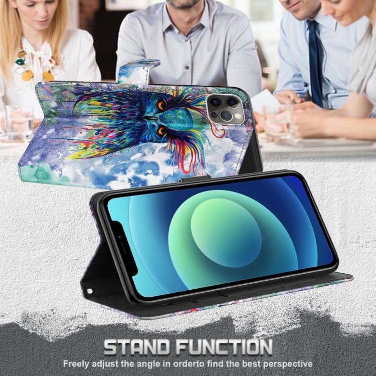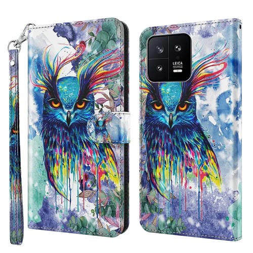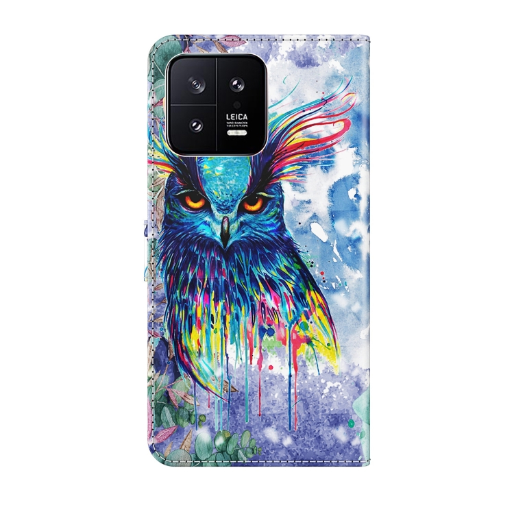 Para Xiaomi 13 Patrón de Pintura 3D Flip Funda de Cuero para Teléfono (Búho de Acuarela)