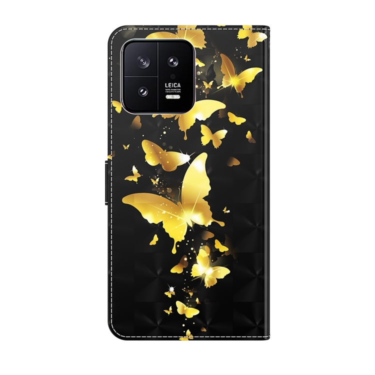Para Xiaomi 13 Patrón de Pintura 3D Funda de Cuero con Tapa para Teléfono (Mariposa Dorada)