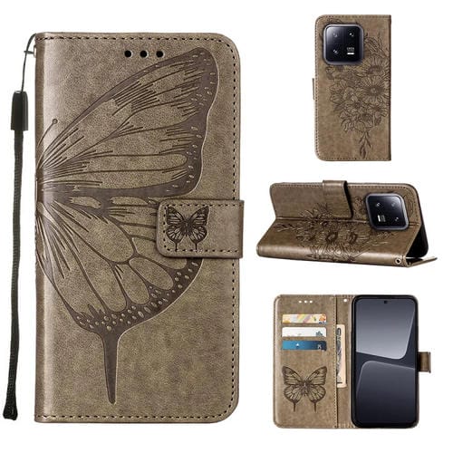 Para Xiaomi 13 Pro Estuche para Teléfono de Cuero con Mariposa En Relieve (Gris)