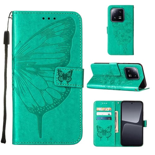 Pour Xiaomi 13 Pro Étui de téléphone en cuir papillon en relief (vert)