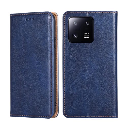 Para Xiaomi 13 Pro Estuche para Teléfono de Cuero Magnético de Color Sólido con Aceite Brillante (Azul)
