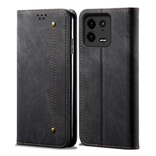 Para Xiaomi 13 Pro Funda de Cuero con Textura de Mezclilla para Teléfono (Negro)