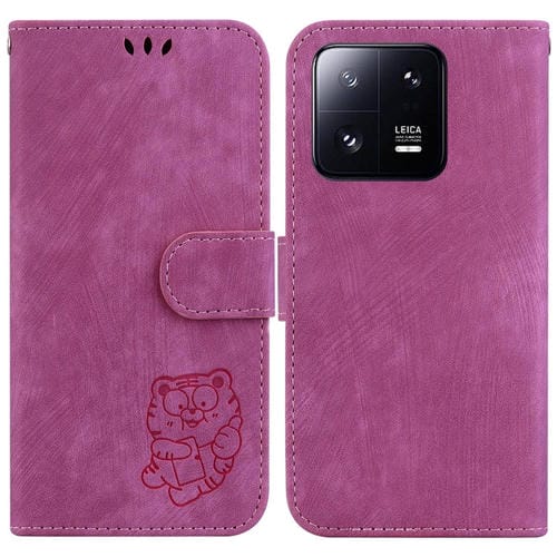 Para Xiaomi 13 Pro Little Tiger Funda de Cuero En Relieve para Teléfono (Rojo Rosa)