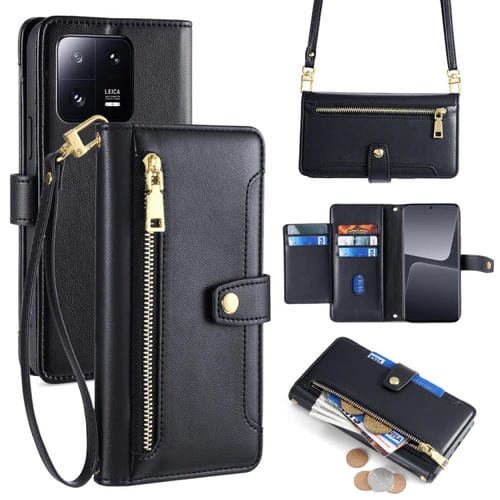 Para Xiaomi 13 Pro Sheep Texture Funda de Cuero para Teléfono con Cremallera y Cuerpo Cruzado (Negro)