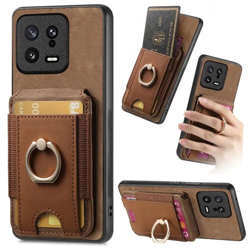 Para Xiaomi 13 Retro Splitable Magnetic Stand Card Bag Funda de Cuero para Teléfono (Marrón)