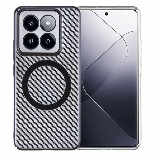 Para Xiaomi 14 Pro 6D Caja De Teléfono Para Pc Magsafe Transparente De Fibra De Carbono Plateada (Negro Estrellado)
