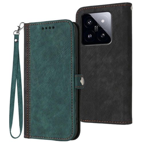 Para Xiaomi 14 Pro Hebilla Lateral Doble Pliegue Correa De Mano Funda De Cuero Para Teléfono (Verde Oscuro)