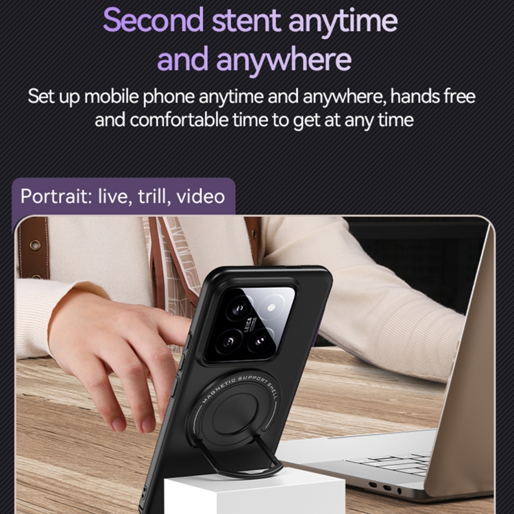 Para Xiaomi 14 Pro Matte Magsafe Funda Magnética Para Teléfono Con Soporte Para Carrito (Negro)