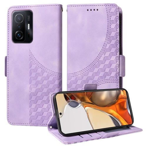 Para Xiaomi Mi 11T / 11T Pro Funda de Teléfono de Cuero Estrellado con Rombos En Relieve (Púrpura)