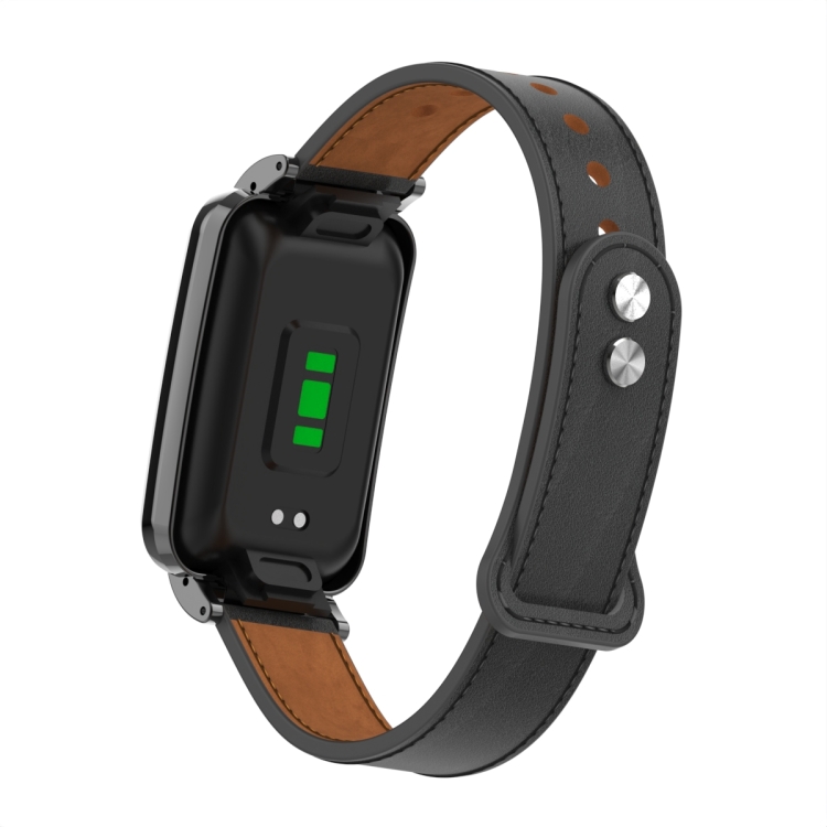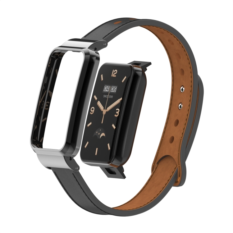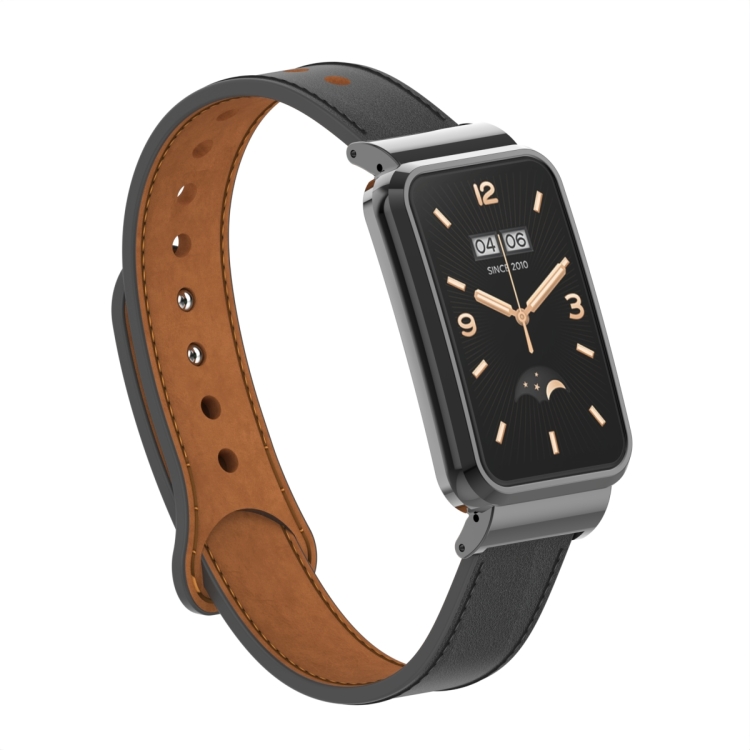 Correa para Xiaomi Mi Band 7 Pro con Marco de Metal y Doble Perno de Cuero (Negro)