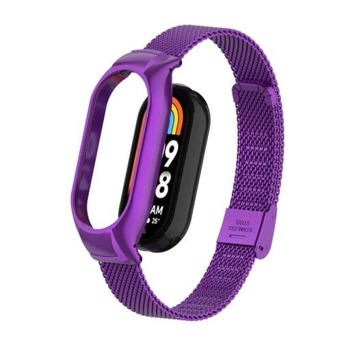 Caja de Metal Integrada para Xiaomi Mi Band 8 + Correa con Hebilla de Malla de Acero (Púrpura)