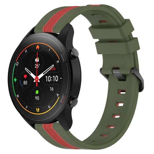 Banda de Reloj Silicona Xiaomi Mi Watch S1 Pro 22mm Dos Colores Vertical (Verde Militar + Rojo)