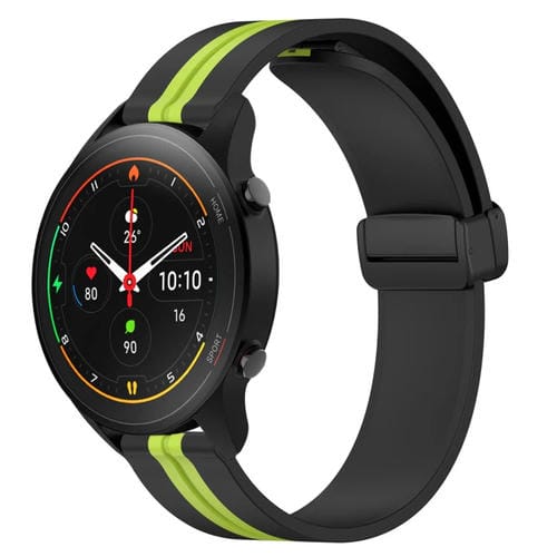 Correa de Reloj Xiaomi Mi Watch S1 Pro 22mm Silicona Cierre Magnético Plegable (Negro + Verde Lima)