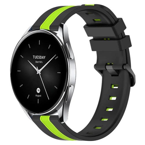 Banda de Reloj Silicona Xiaomi Mi Watch S2 42mm 22mm Dos Colores Vertical (Negro + Verde Lima)