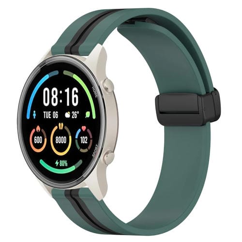 Correa de Reloj Xiaomi Mi Watch Sport 22mm Silicona Cierre Magnético Plegable (Verde Oliva + Negro)