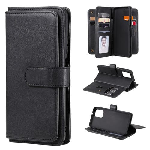 Para Xiaomi Redmi Note 10 4G Multifuncional Magnético Hebilla de Cobre Horizontal Flip Funda de Cuero de Color Sólido con 10 Ranuras para Tarjetas y Billetera y Soporte y Marco de Fotos (Negro)