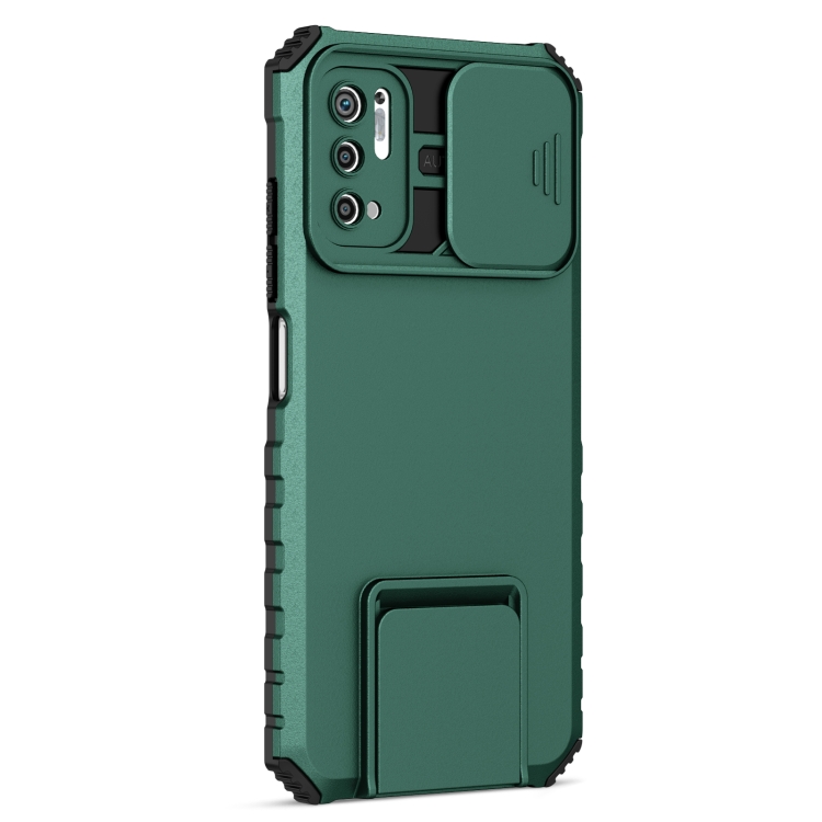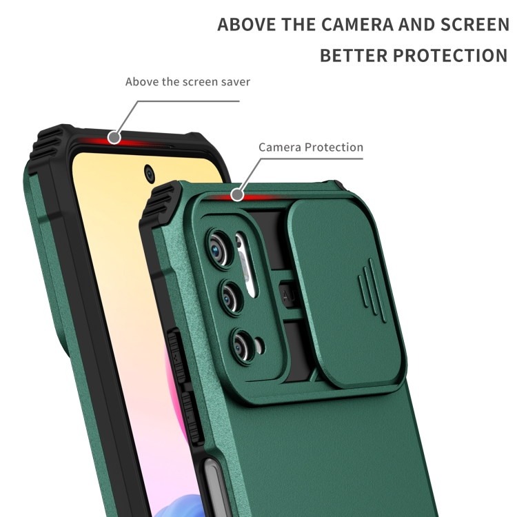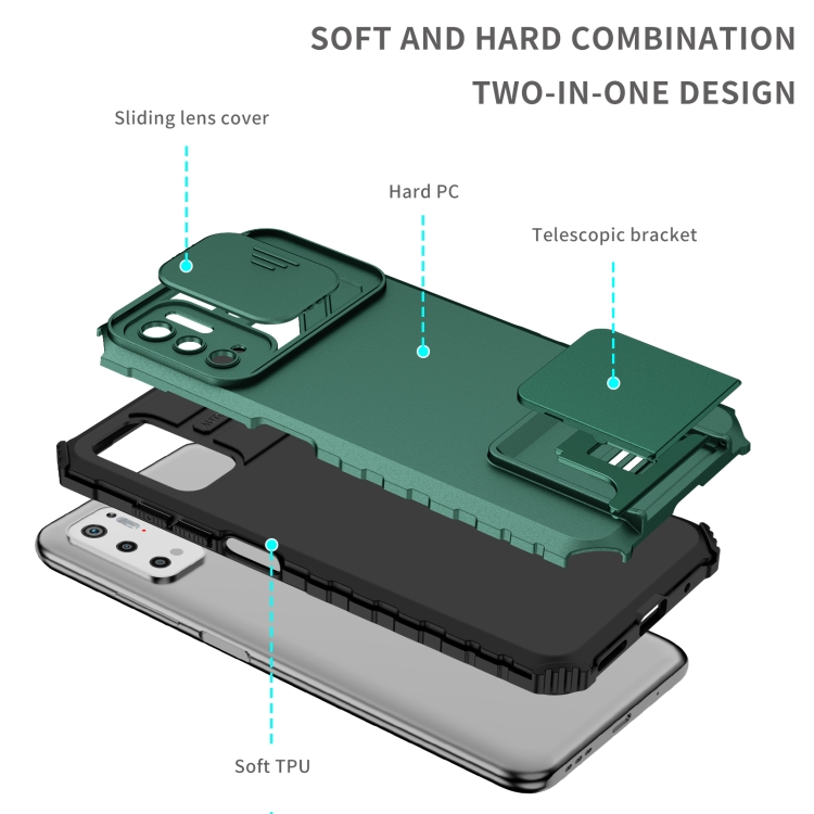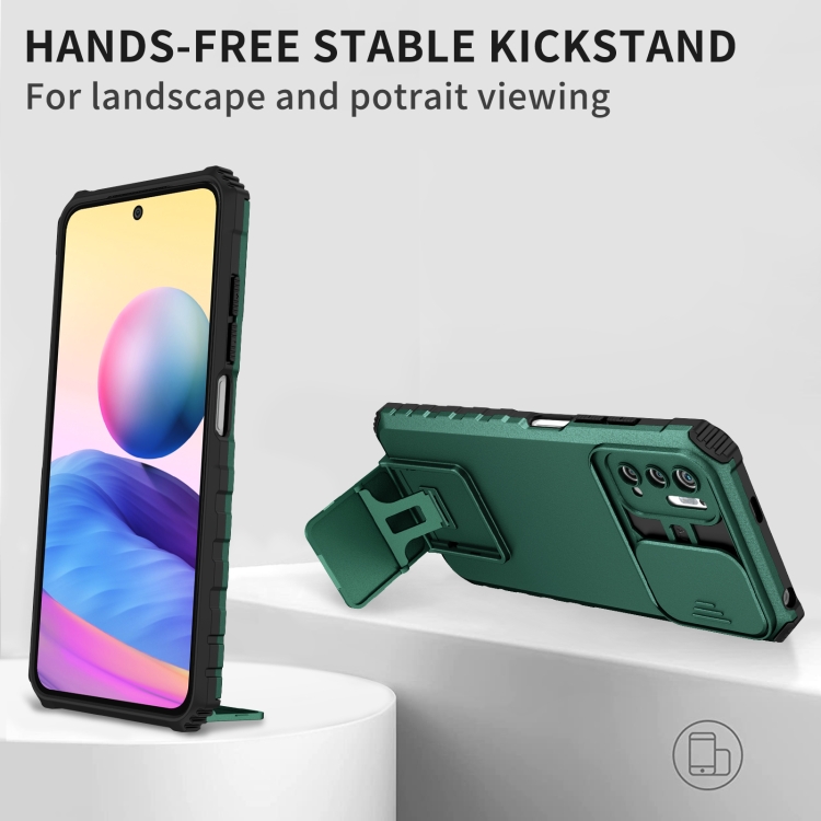 Para Xiaomi Redmi Note 10 5G Soporte estereoscópico Funda deslizante para teléfono Camshield (Verde)