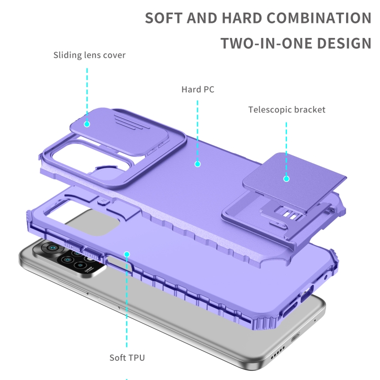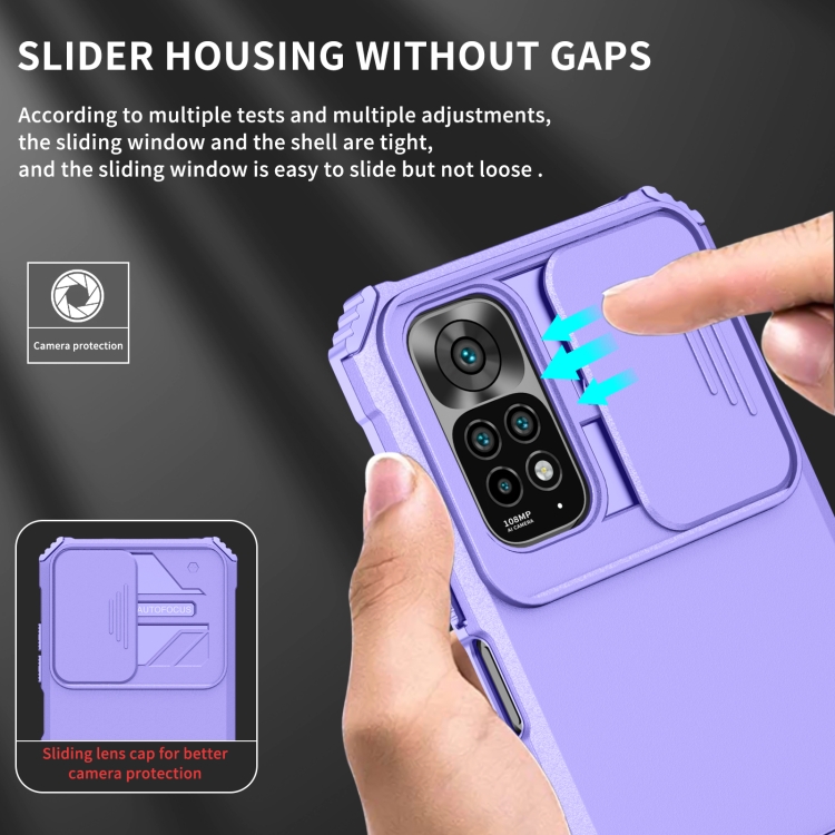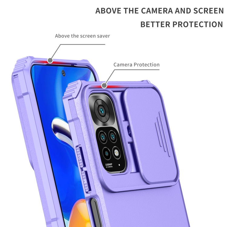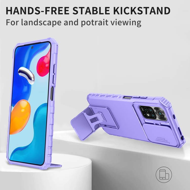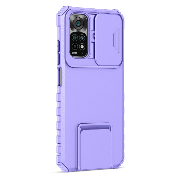 Para Xiaomi Redmi Note 11/11S Global Stereoscopic Holder Sliding Camshield Phone Case (Púrpura)