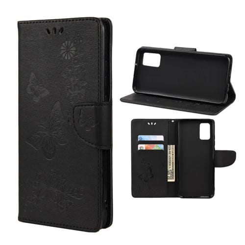 Para Xiaomi Redmi Note 11 Mariposa Caja de Cuero Horizontal Flip Horizontal con Ranura para Tarjeta y Soporte (Negro)