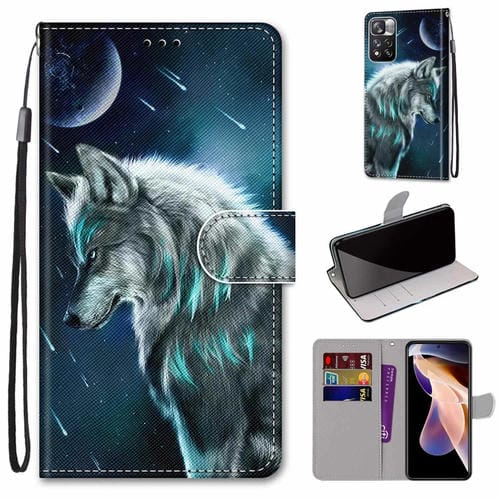 Para Xiaomi Redmi Note 11 Pro / 11 Pro + Dibujo de Colores Textura Cristrate Cristrada Horizontal Flip Culeno de Cuero de Cuero con Titulares y Tarjetas Slots & Billet & Lanyard (Lobo Pensativo)