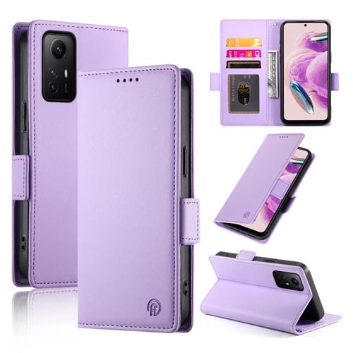 Para Xiaomi Redmi Note 12S 4G Funda para Teléfono de Cuero Esmerilado Magnético con Hebilla Lateral (Púrpura)
