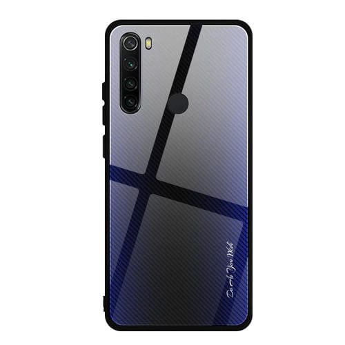 Para Xiaomi Redmi Note 8 Caja de Vidrio de Color Degradado con Textura de Fibra de Carbono (Púrpura)