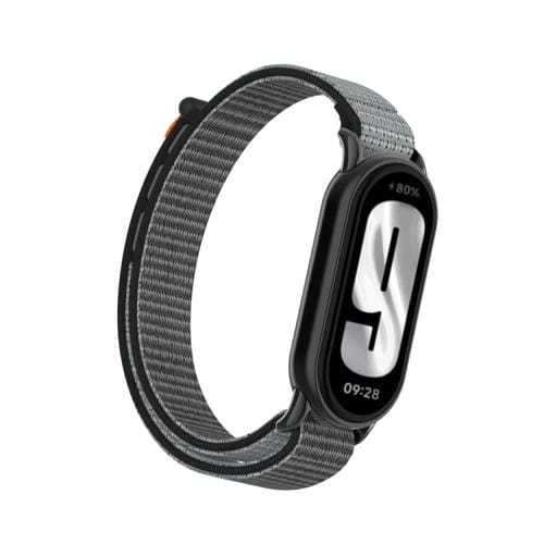 Conector de Metal + Correa Nailon con Cierre Velcro para Xiaomi Smart Band 9/8 (Anclaje Gris)