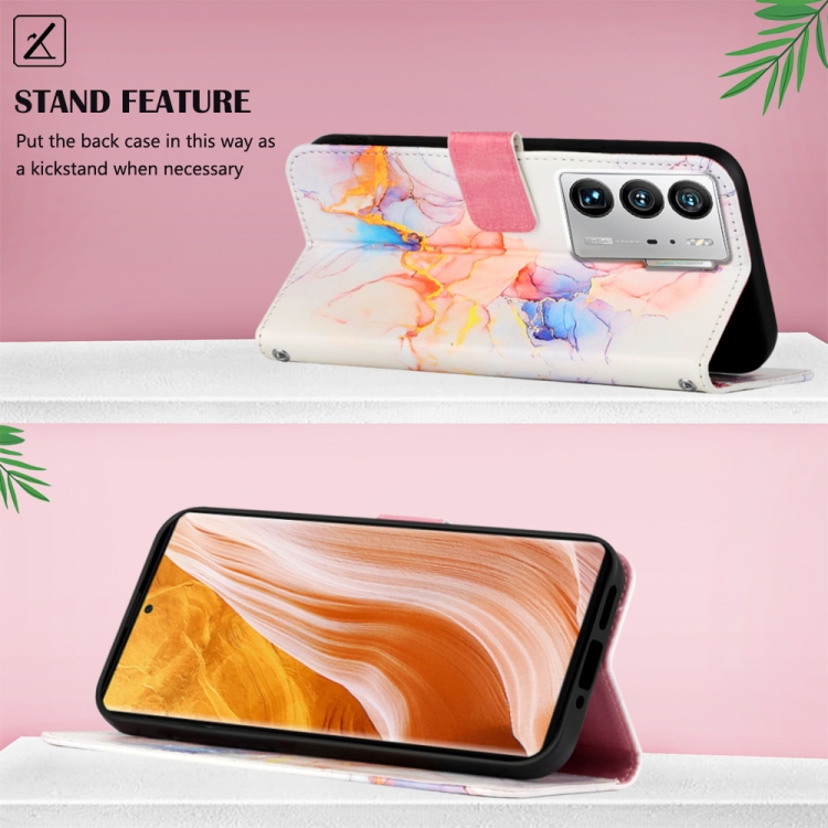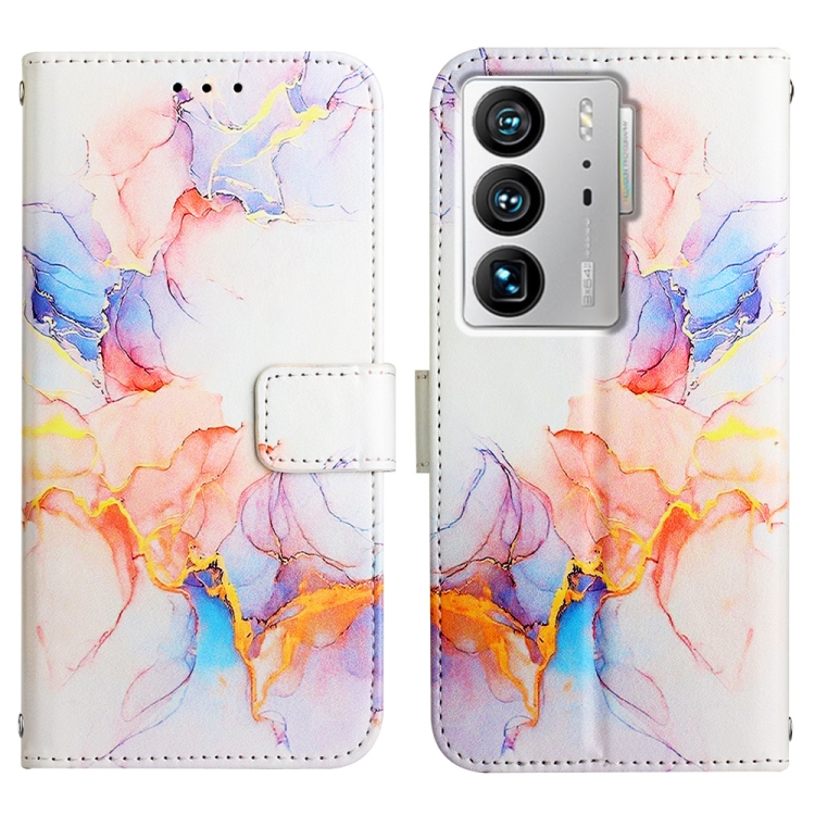 Estuche de Cuero para ZTE Axon 40 Ultra Pt003 con Tapa Patrón Mármol (Blanco)